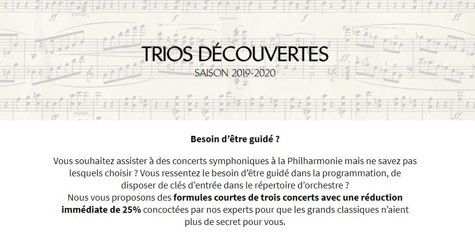 Mais comment choisir si on n'est pas féru de musique classique ? La Philharmonie a proposé cette année une sélection qui m'a beaucoup aidé, les Trios Découvertes. J'espère qu'ils le referont cette année.